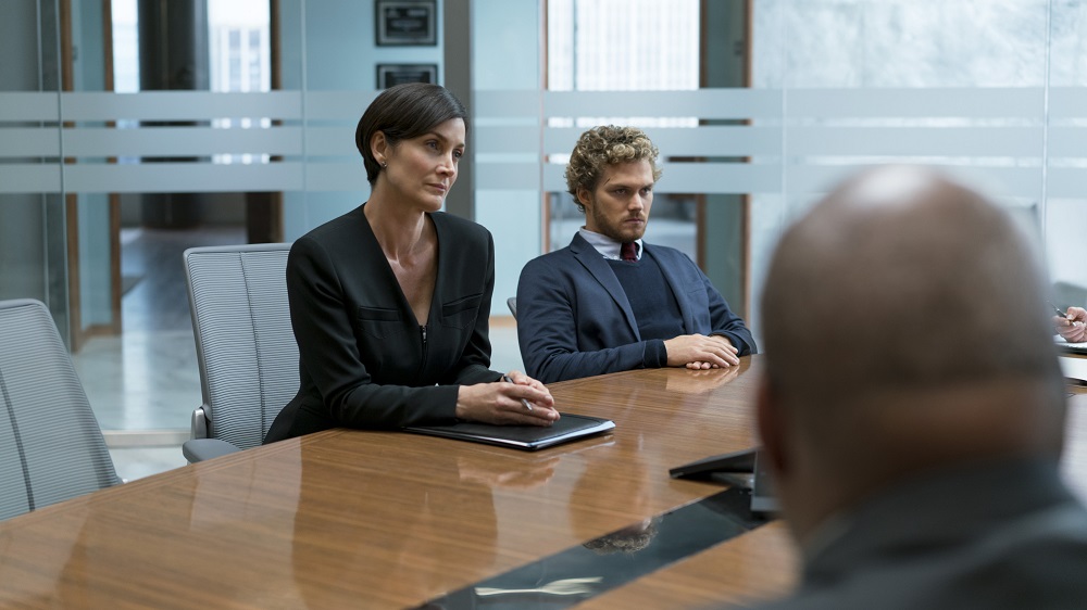 É claro que um crossover não poderia deixar de existir em Punho de Ferro!! Assim como nas séries anteriores do universo Marvel/Netflix, teremos a participação de Claire Temple (Rosario Dawson) e Jeri Hogarth (Carrie-Anne Moss).